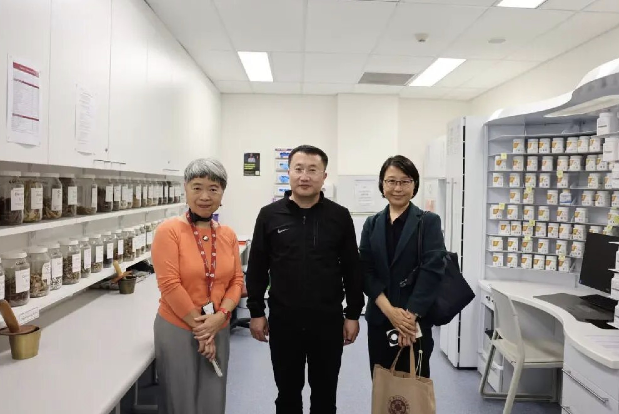 在朱小纾教授的带领下,中国国家中医药管理局代表团参观了中心的中医特色诊室、中药房及教学科研空间,详细了解中心在临床诊疗、科研创新及人才培养方面的运行机制与创新实践。